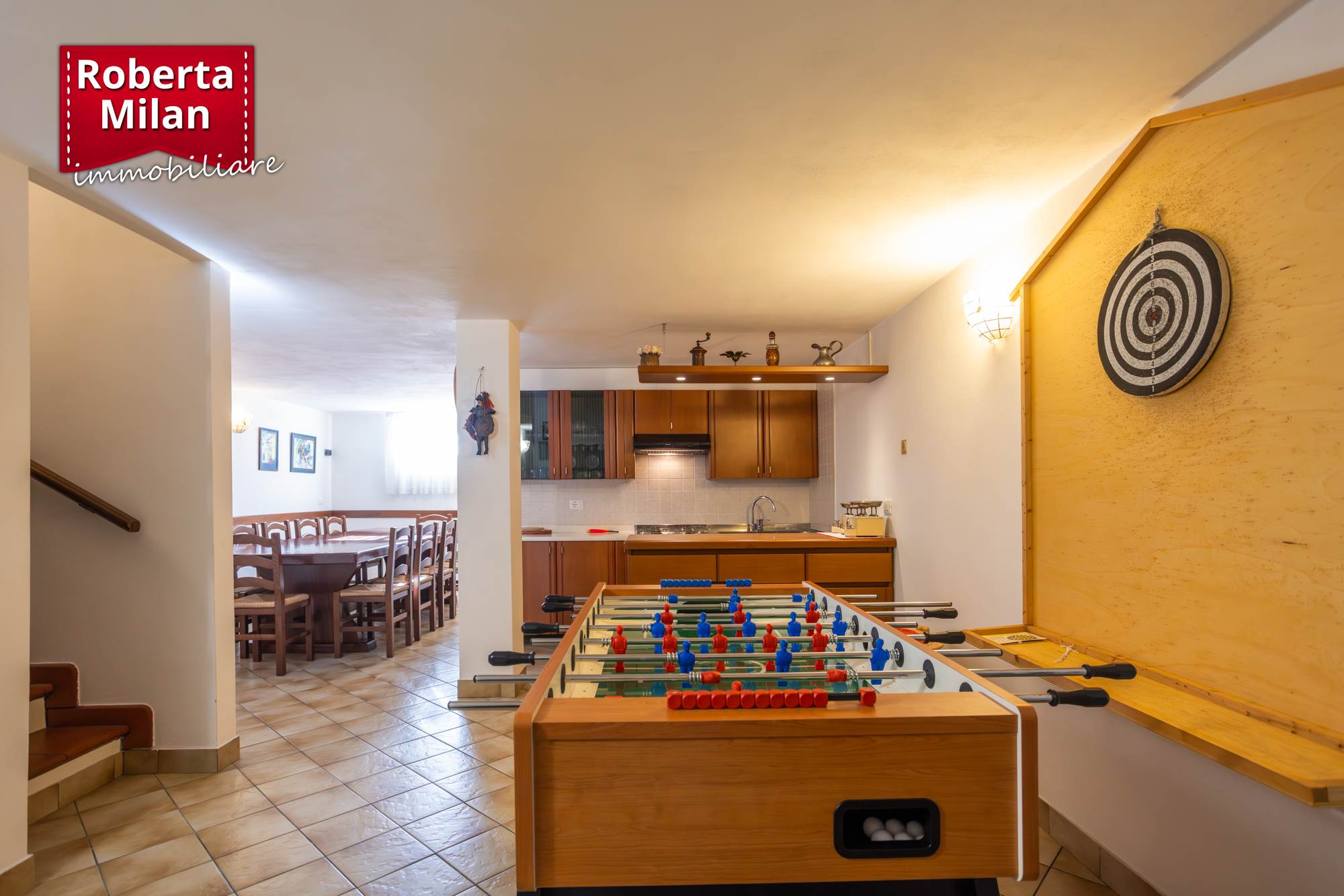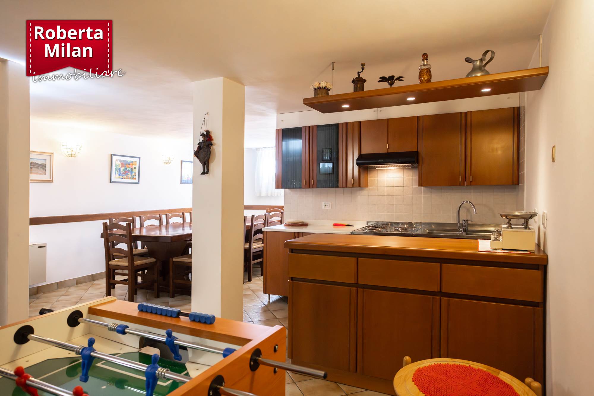 Nel prezzo è compresa la cucina marca "Valcucine" comprensiva di elettrodomestici (lavastoviglie e fuochi sostituiti da poco), l'armadio su misura in soggiorno, gli arredi nella taverna (calcetto escluso), salvo altro da concordare con la parte venditrice.