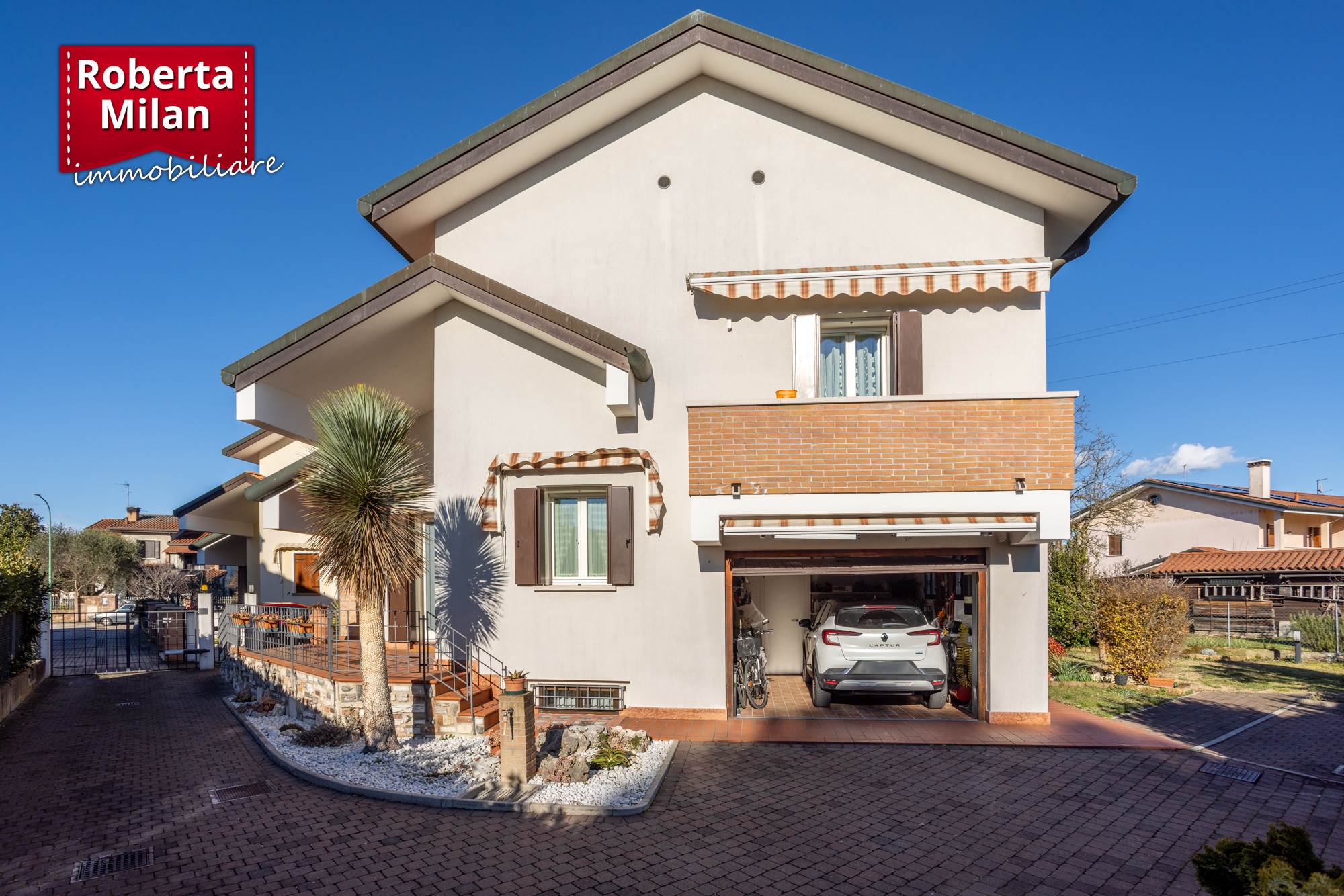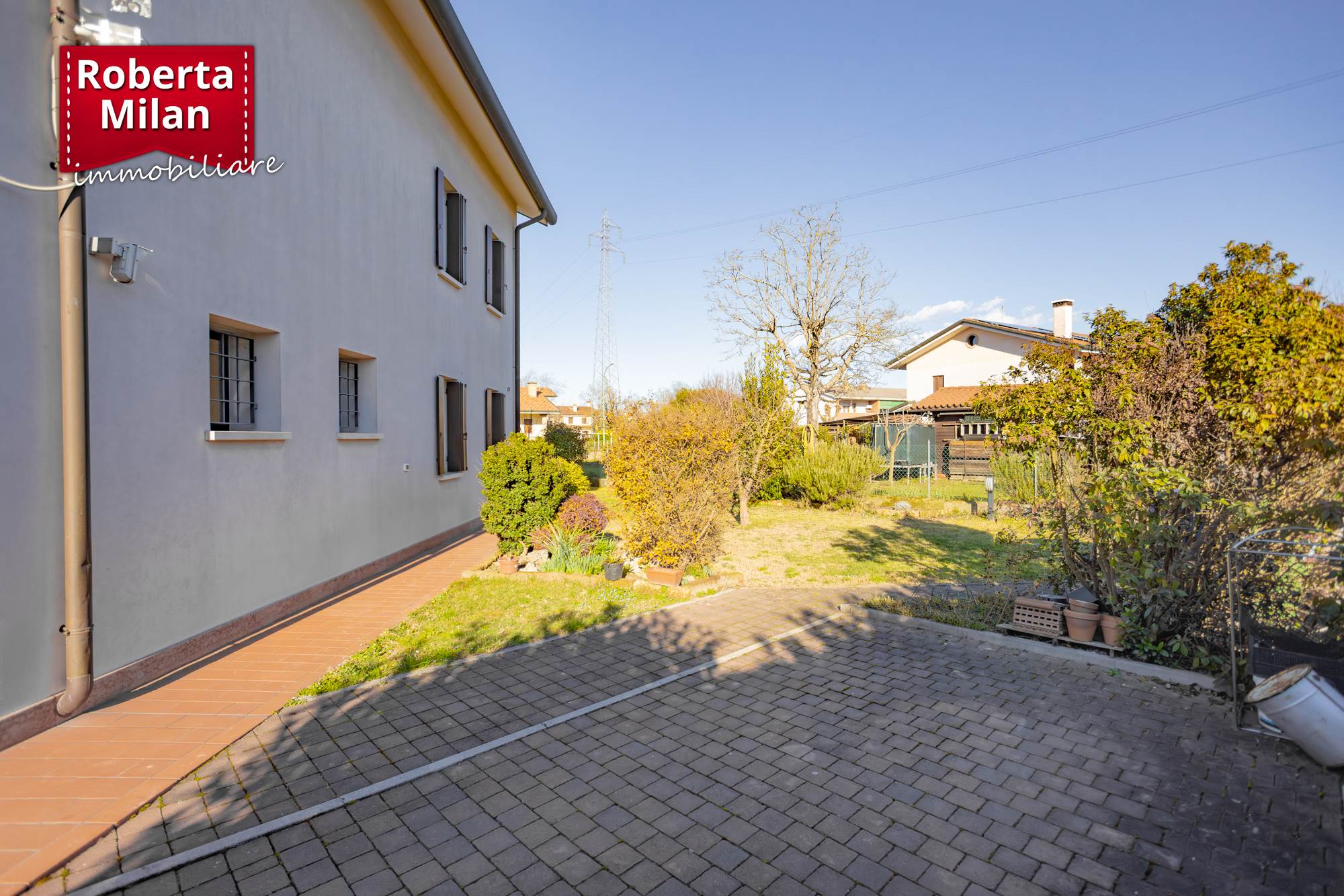L'abitazione gode altresì di aree esterne private su quattro lati, recintate su tutto il perimetro, e destinate a giardino e parcheggio.