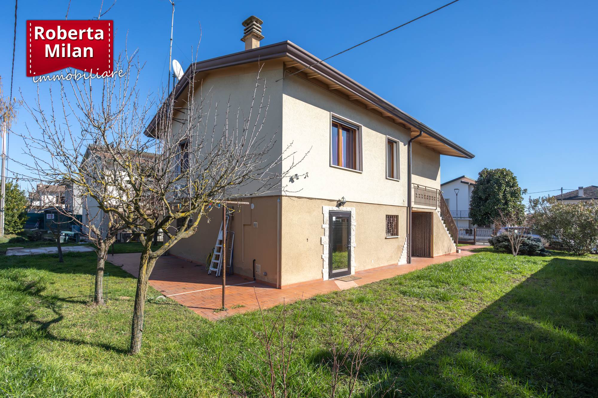 Ad Olmo di Martellago (VE), nel cuore del paese in quartiere residenziale tranquillo, proponiamo in esclusiva abitazione unifamiliare su due piani fuori terra e circa 370 mq. di giardino privato.