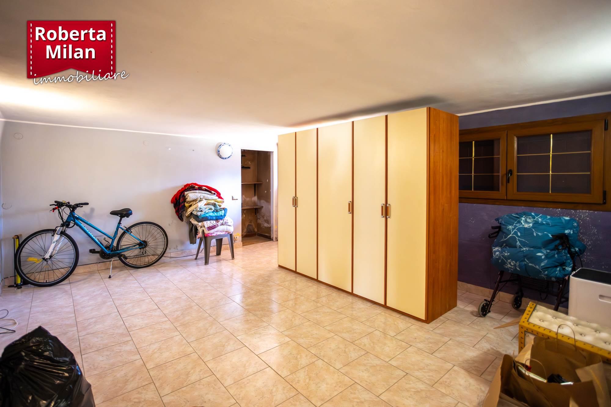 Al piano terra, si compone di due locali principali ora destinati a taverna con cucina per complessivi 47 mq, un w.c.-lavanderia, un ripostiglio ed un garage di circa 23 mq.; i due piani sono collegati tra loro con scala interna di servizio.